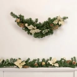 Northlight 6′ X 9″ Foliage, Poinsettia And Ornament Artificial Christmas Garland, Unlit