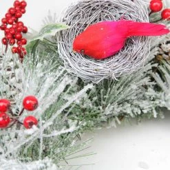 Northlight Berries And Red Cardinals In Nests Flocked Artificial Christmas Wreath, 24-Inch, Unlit