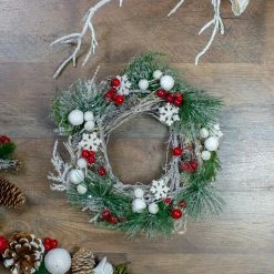 Northlight Frosted Pine Winter Foliage, Berries And Stars Mini Christmas Wreath, 10-Inch, Unlit