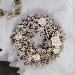 Northlight Frosted Pine Cone And Wooden Rose Artificial Christmas Wreath, 19-Inch, Unlit