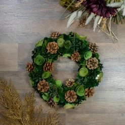 Northlight Green Wooden Rose And Pine Cone Artificial Christmas Wreath, 13.5-Inch, Unlit