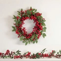 Northlight Lush Berry And Leaf Artificial Christmas Wreath, 18-Inch, Unlit