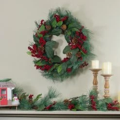 Northlight Leaves, Berry And Pine Needle Artificial Christmas Wreath – 24-Inch, Unlit