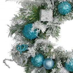 Northlight Flocked Pine With Teal And Silver Ornaments Artificial Christmas Wreath, 24-Inch, Unlit