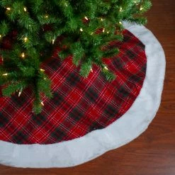 Northlight 60″ Red And Green Plaid Christmas Tree Skirt With White Sherpa Trim