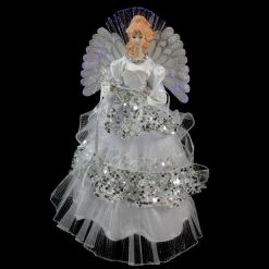 Northlight 16″ White And Silver Lighted Fiber Optic Angel Sequined Gown Christmas Tree Topper