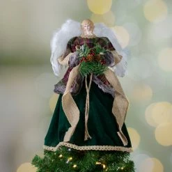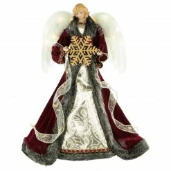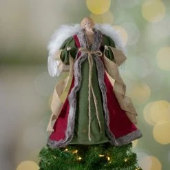 Northlight 18″ Lighted Red And Gold Angel In A Dress Christmas Tree Topper – Warm White Lights