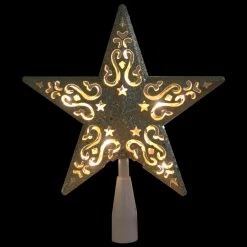 Northlight 8.5″ Lighted Gold And White Star Cut-Out Design Christmas Tree Topper – Clear Lights