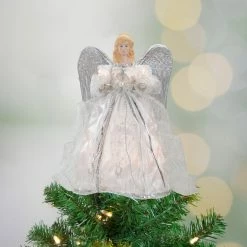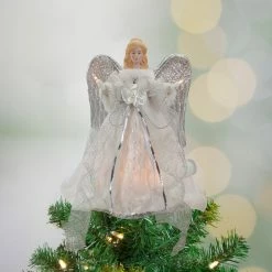 Northlight 12″ Lighted Silver And White Angel With Wings Christmas Tree Topper – Clear Lights