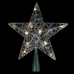 Northlight 9″ Lighted Silver Wire Star Christmas Tree Topper – White LED Lights