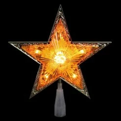 Northlight 9″ Pre-Lit Gold And Amber Crystal 5 Point Star Christmas Tree Topper – Clear Lights