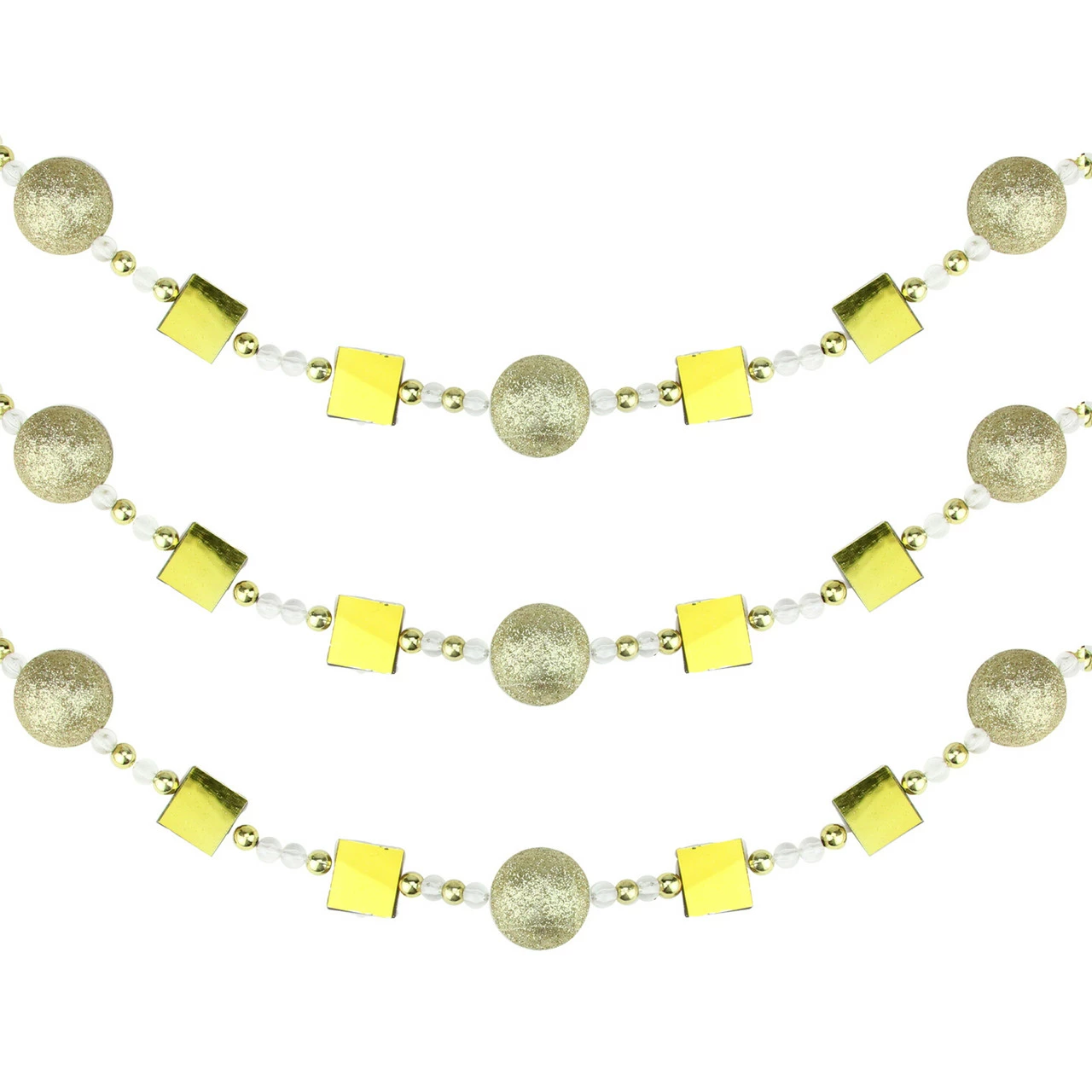 Dazzling gold glittered balls, square mirrored accents, and gold and clear beads