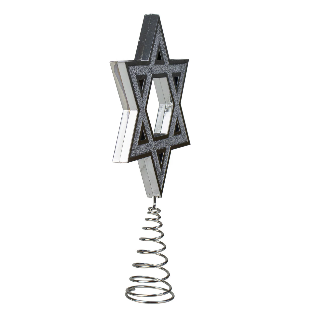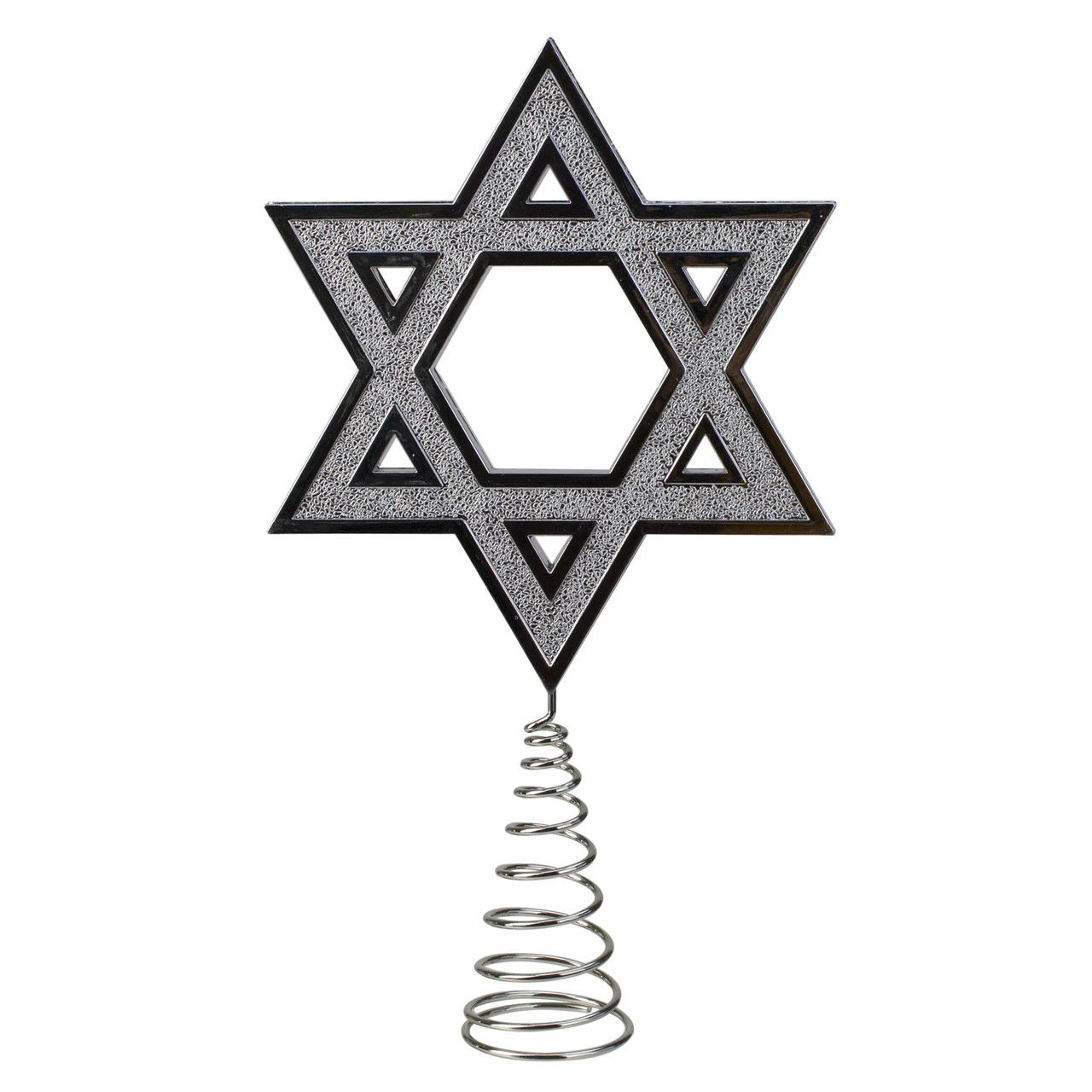 Kurt Adler 8″ Lighted Blue And White Star Of David Capiz Shell Christmas Tree Topper – Clear Lights