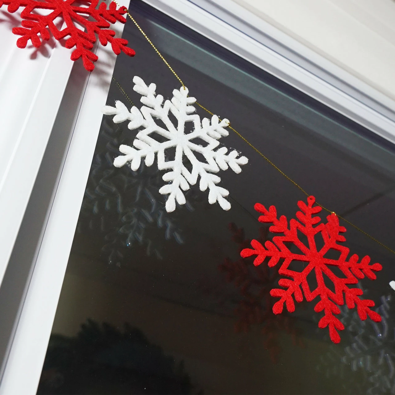 White snowflakes are lightly glittered