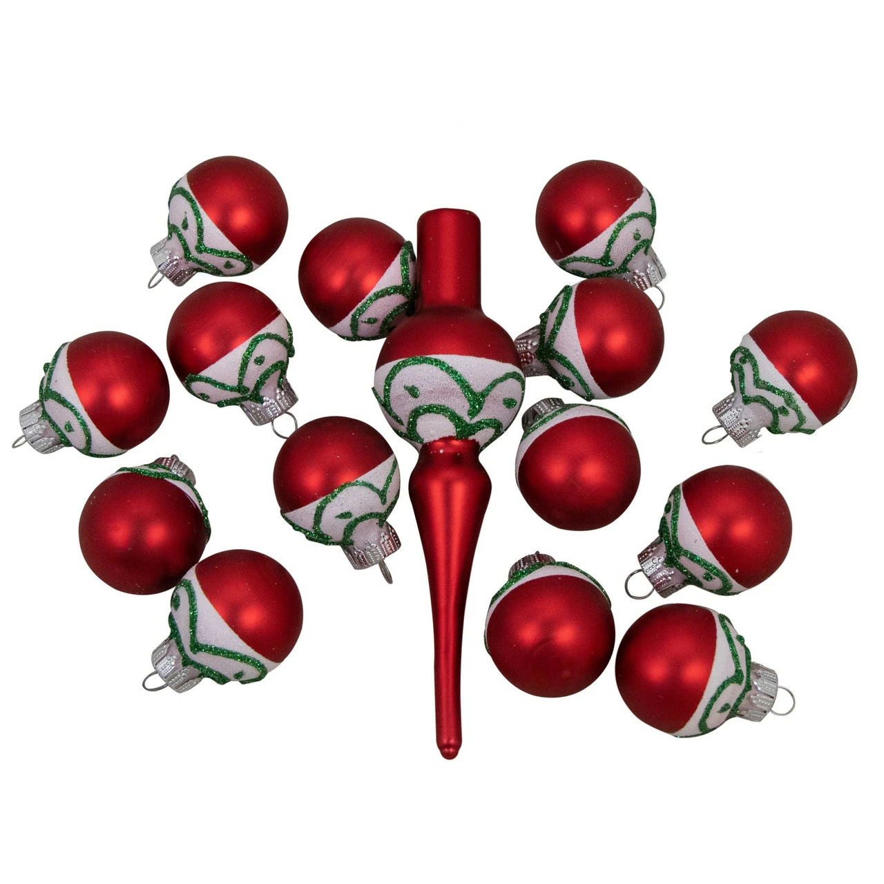 Includes 14 ball ornaments and 1 tree topper