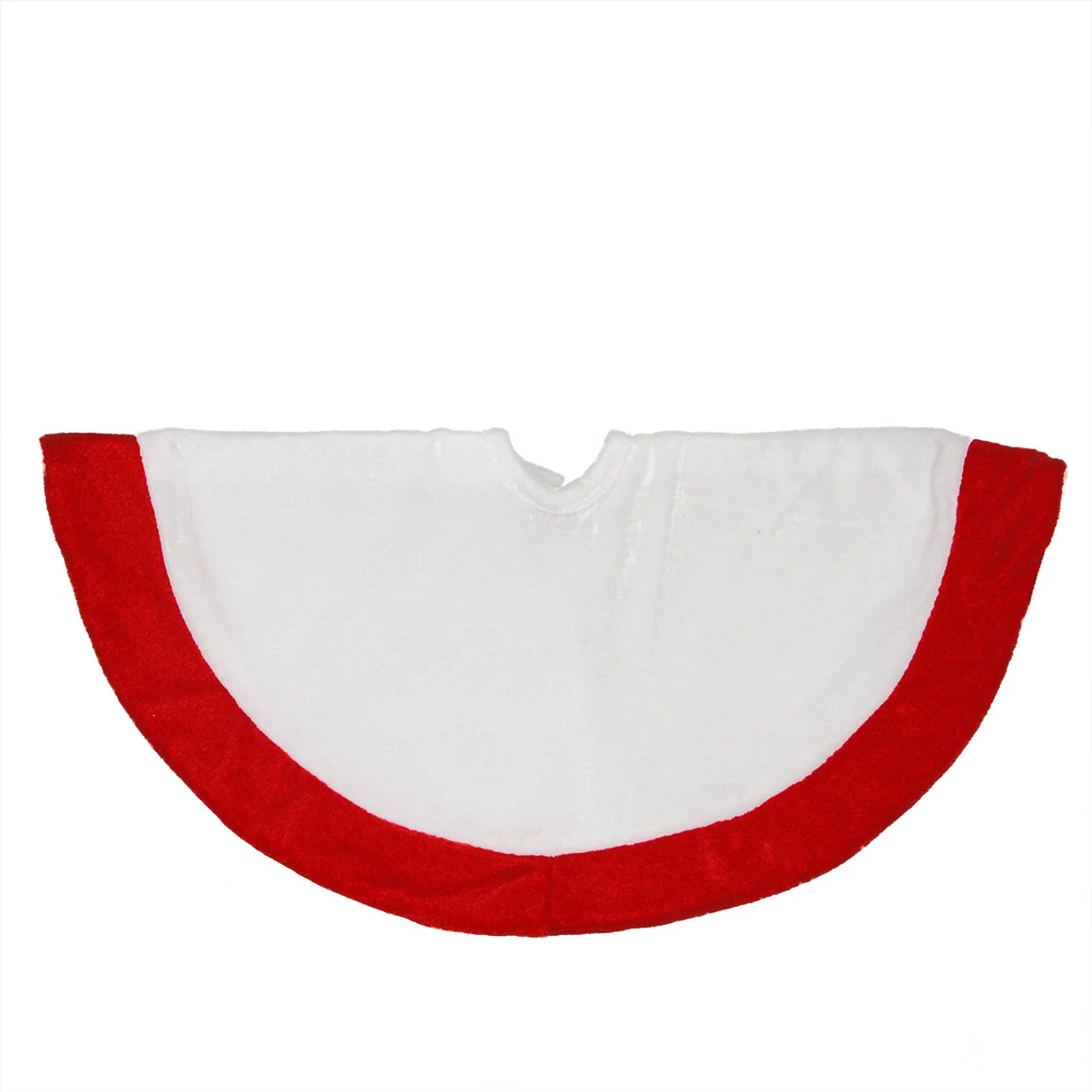 White velveteen body with a red trim tree skirt