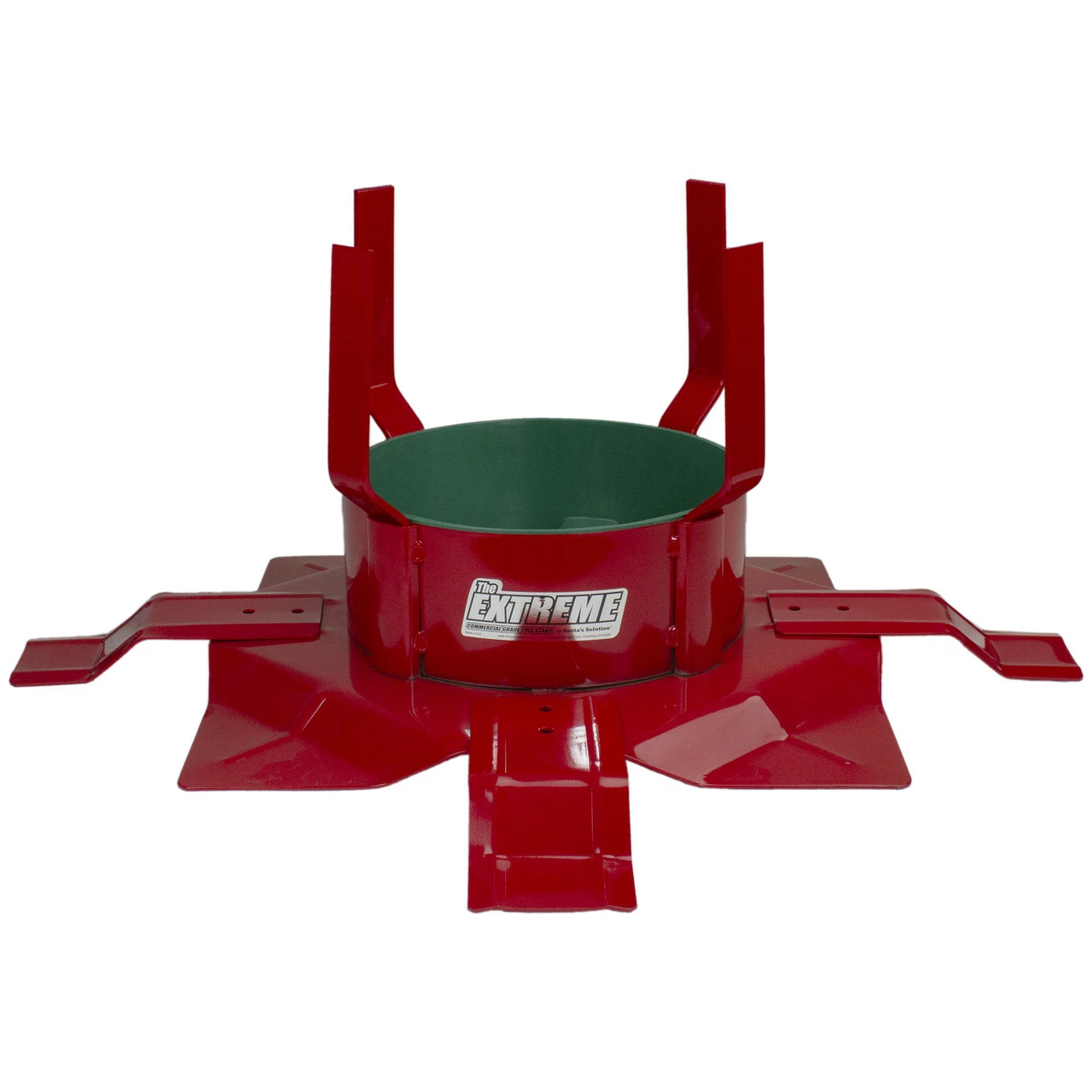 Red and green Christmas tree stand with powder coated baked enamel finish