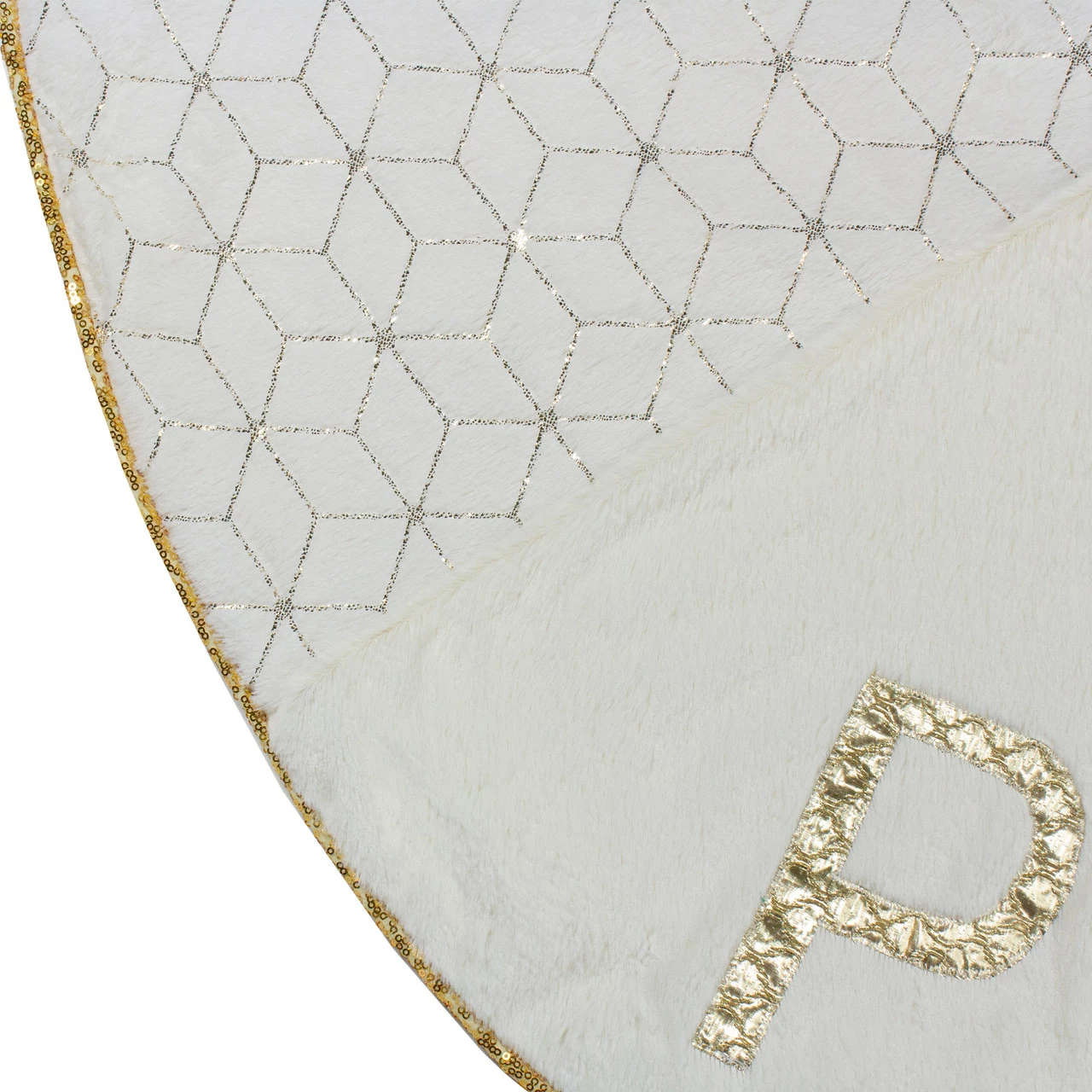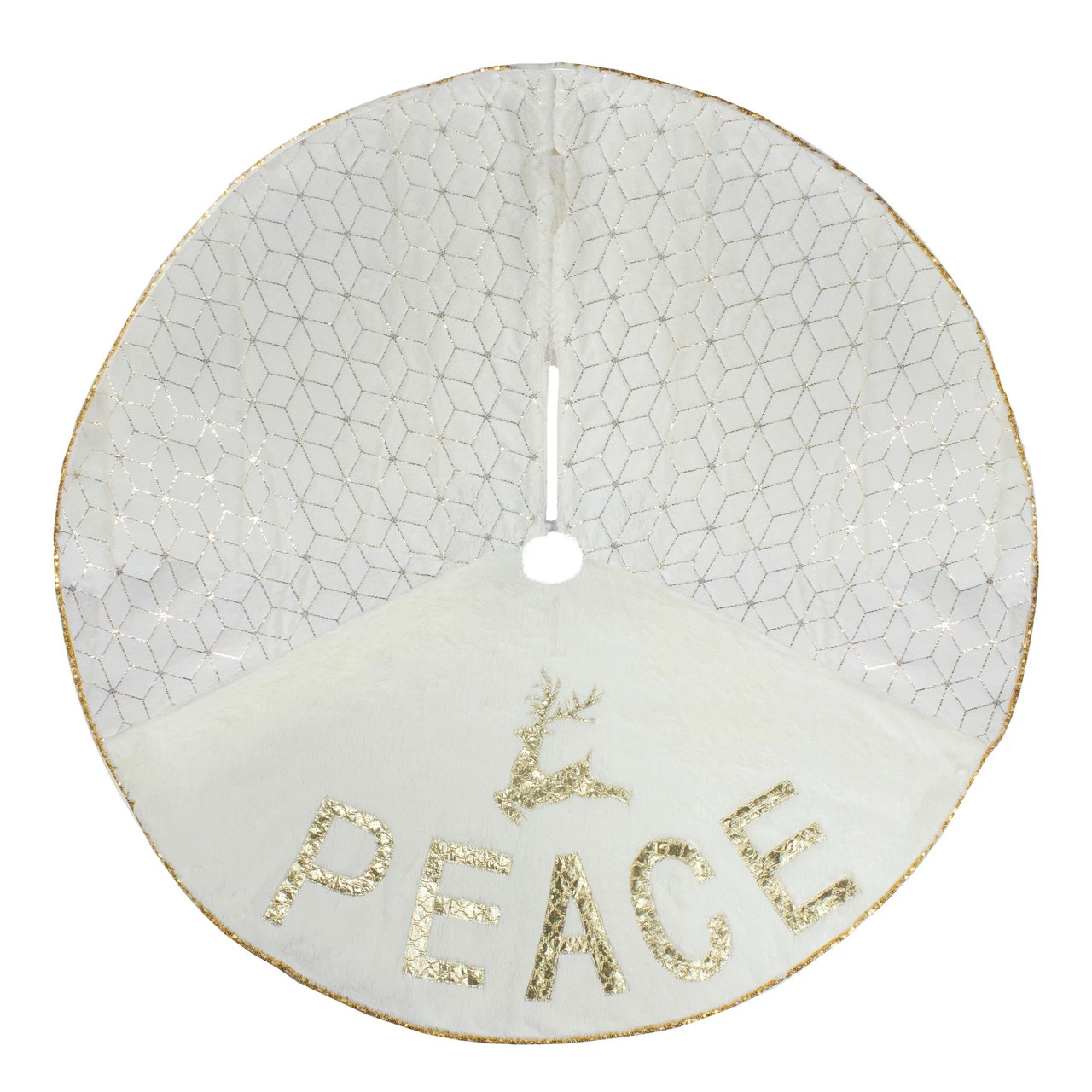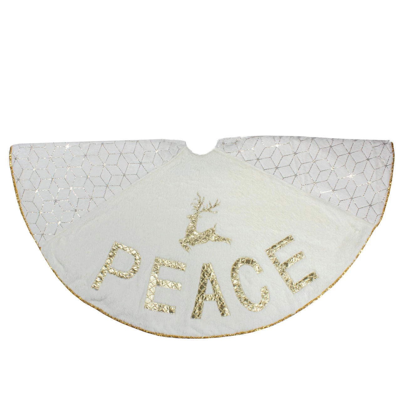 Cream faux fur ‘Peace’ and reindeer Christmas tree skirt