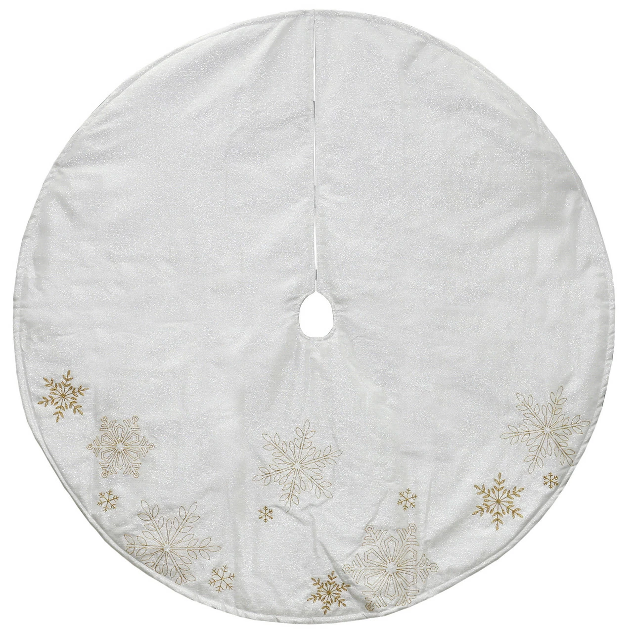 White and gold embroidered Christmas tree skirt