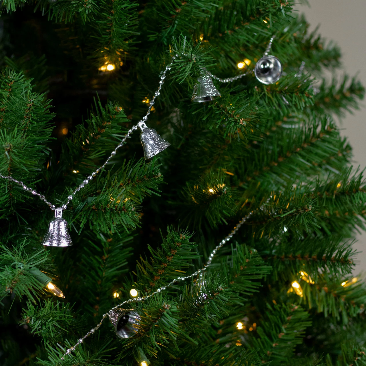 Bells are separated by small silver faceted beads