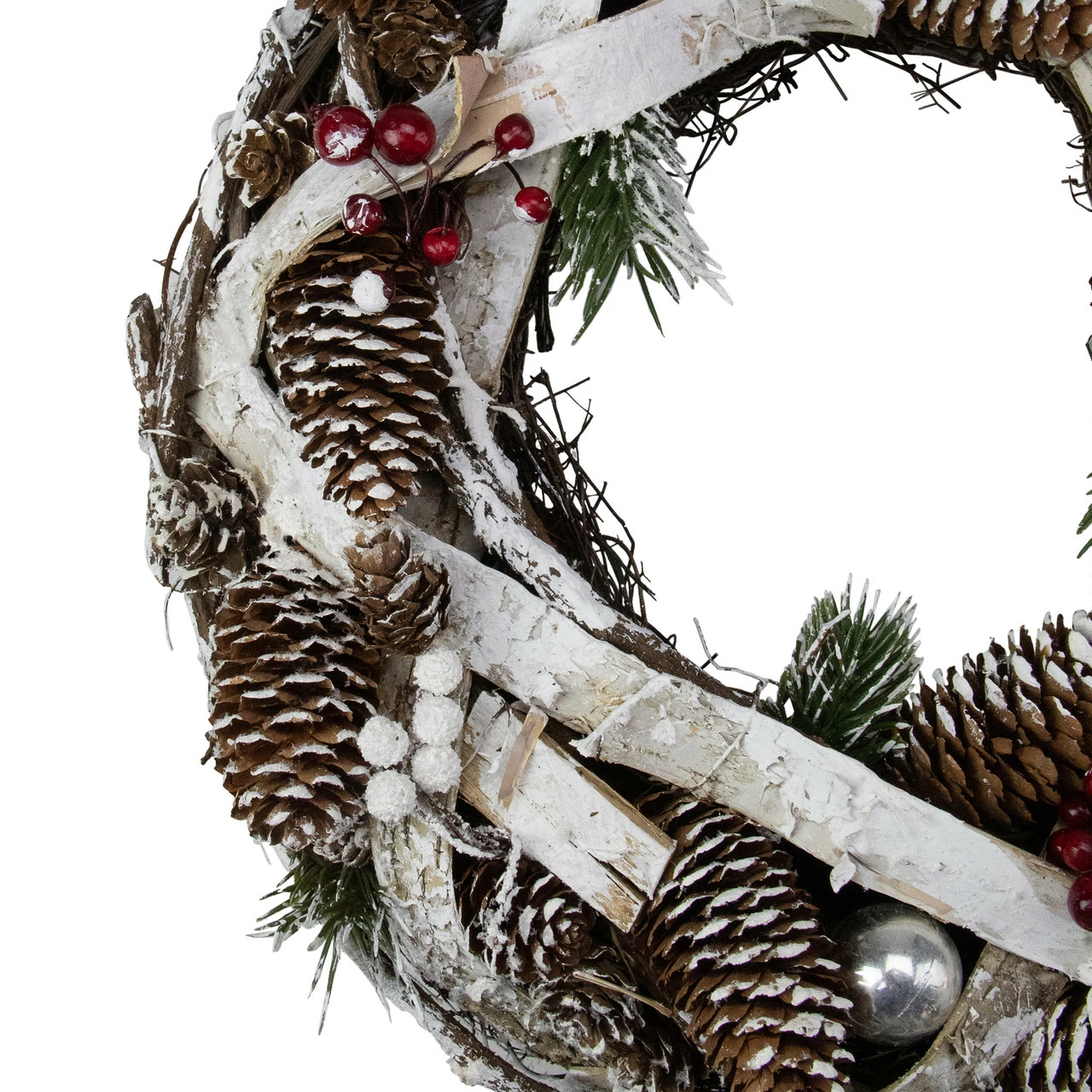 Birch bark and pine cone Christmas wreath