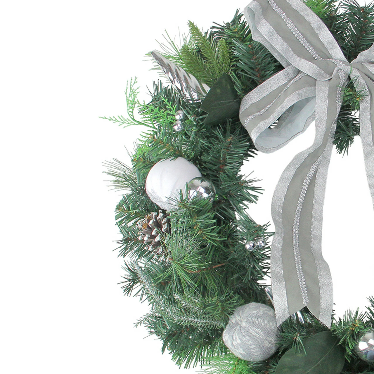 Silver 4-loop bow assorted sized silver ball and finial ornaments