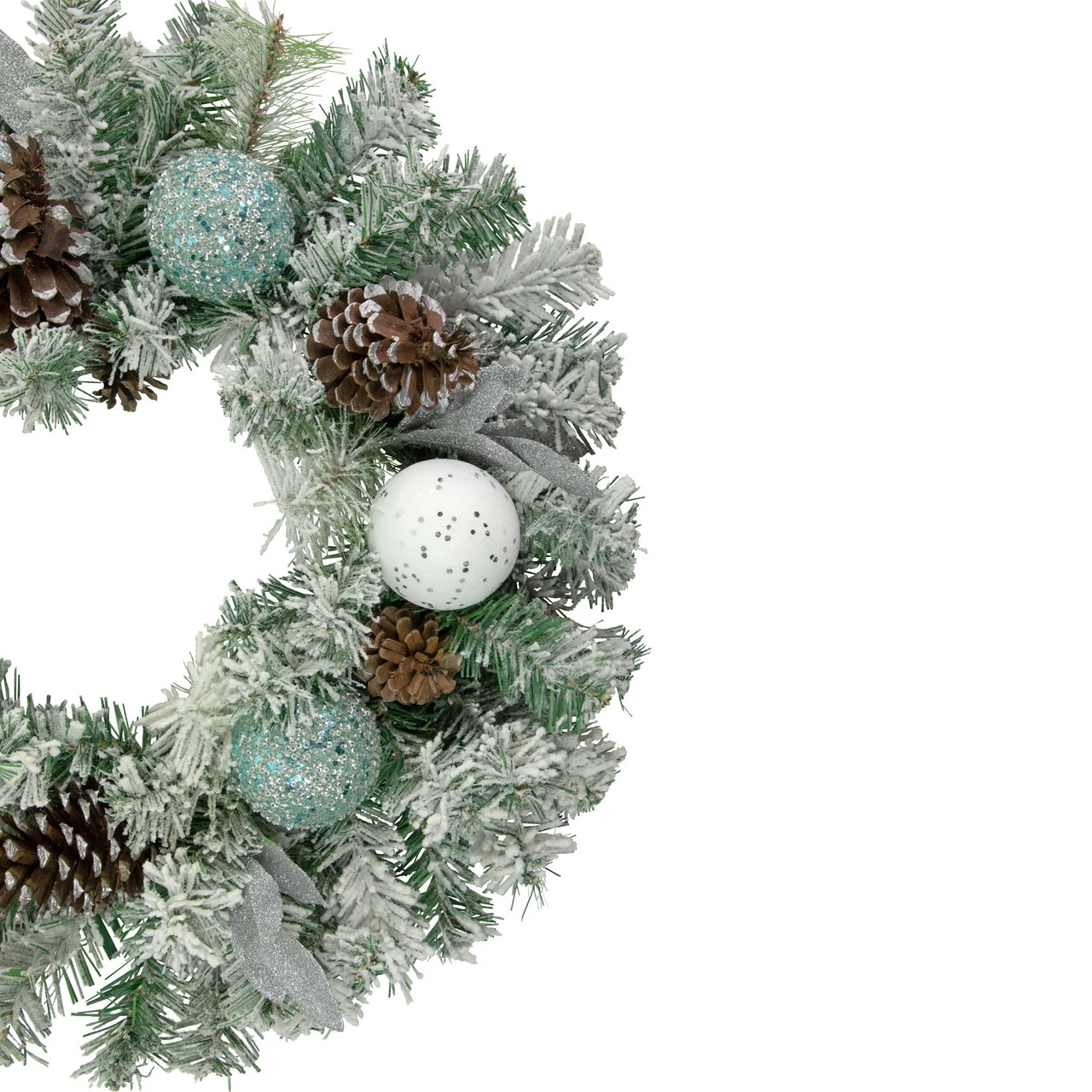 Designed with assorted sized teal and silver ball ornaments with silver leaves