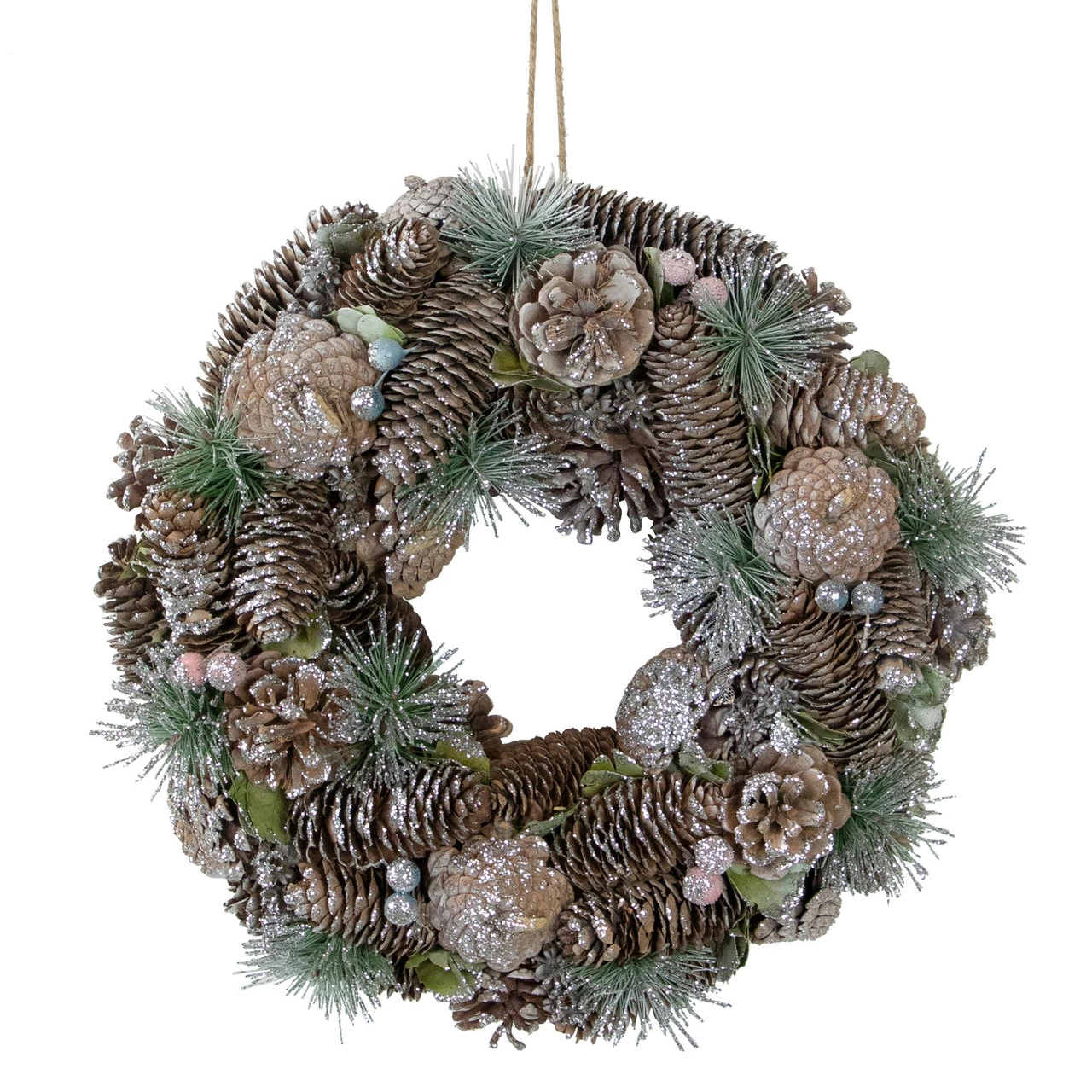 Features pinecones and berries