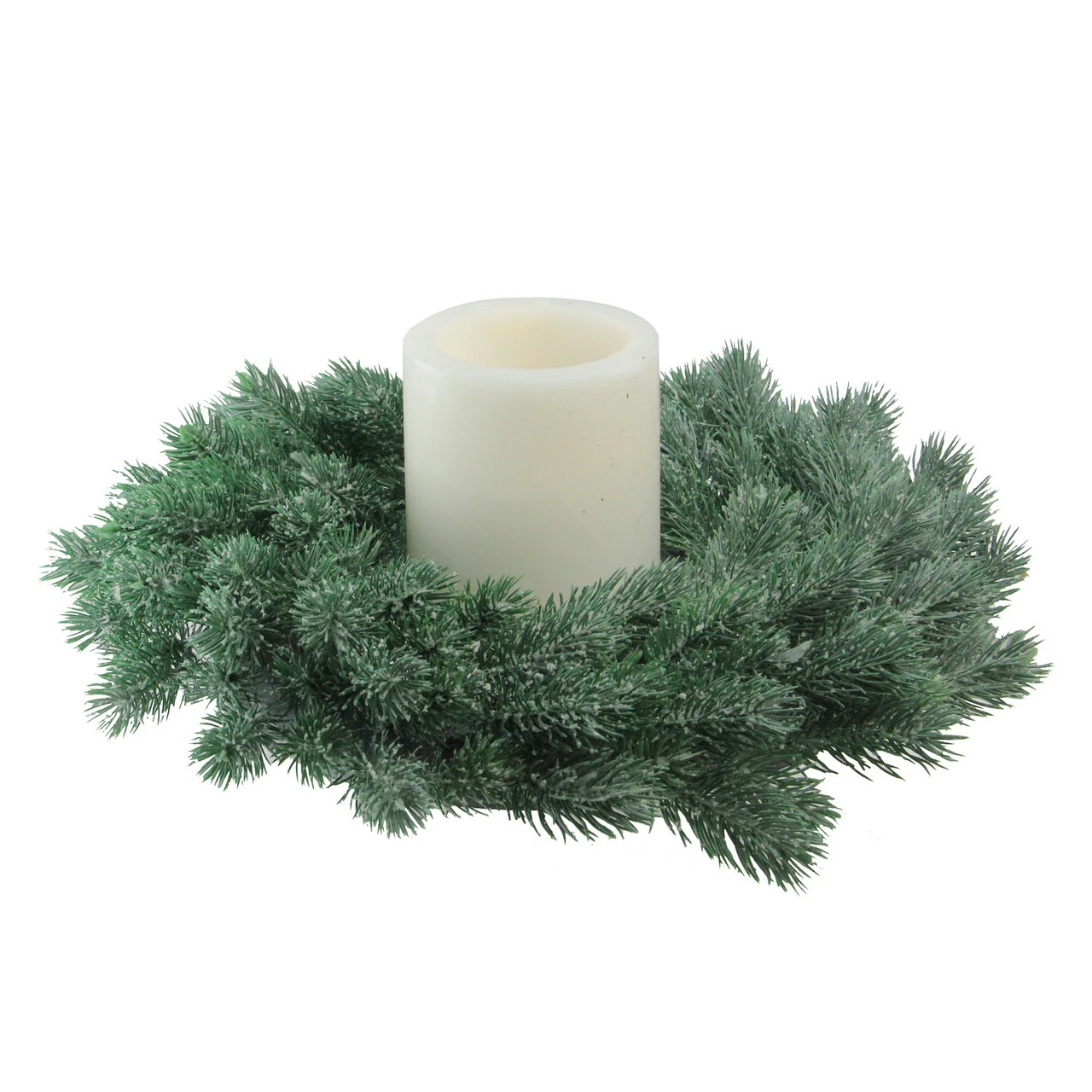 Traditional artificial green pine wreath is ready for your own bows or other embellishments