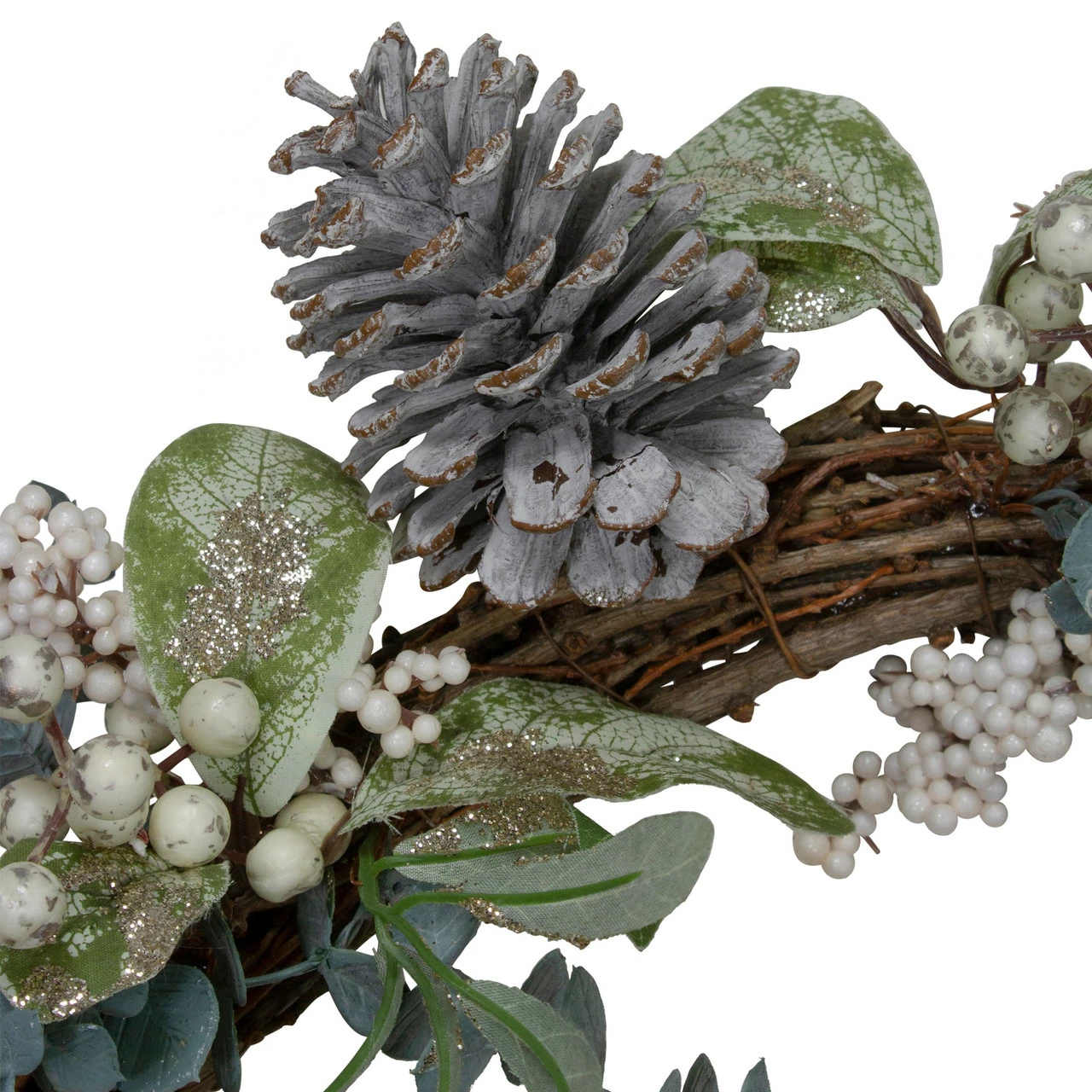 Material(s): twig/fabric/pine cones/plastic/wire