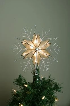 Kurt Adler 10.5″ Lighted Capiz Star With Silver Snow Flake Christmas Tree Topper – Clear Lights