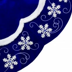 Northlight 48-Inch Velvet Royal Blue And White Snowflake Christmas Tree Skirt