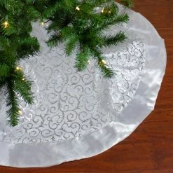 Northlight 48″ Silver And White Floral Trimmed Christmas Tree Skirt