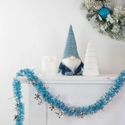Northlight 50′ X 2″ Turquoise Blue And Silver Christmas Tinsel Garland With Snowflakes – Unlit