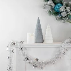Northlight 50′ X 2″ White And Silver Christmas Tinsel Garland With Snowflakes – Unlit