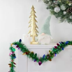 Northlight 50′ X 2″ Green And Multi-Color Christmas Light Bulb Wrapped Tinsel Garland – Unlit