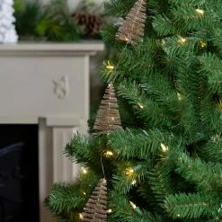 Northlight 6.75′ LED Lighted B/O Gold Mini Sisal Tree Christmas Garland – Warm White Lights