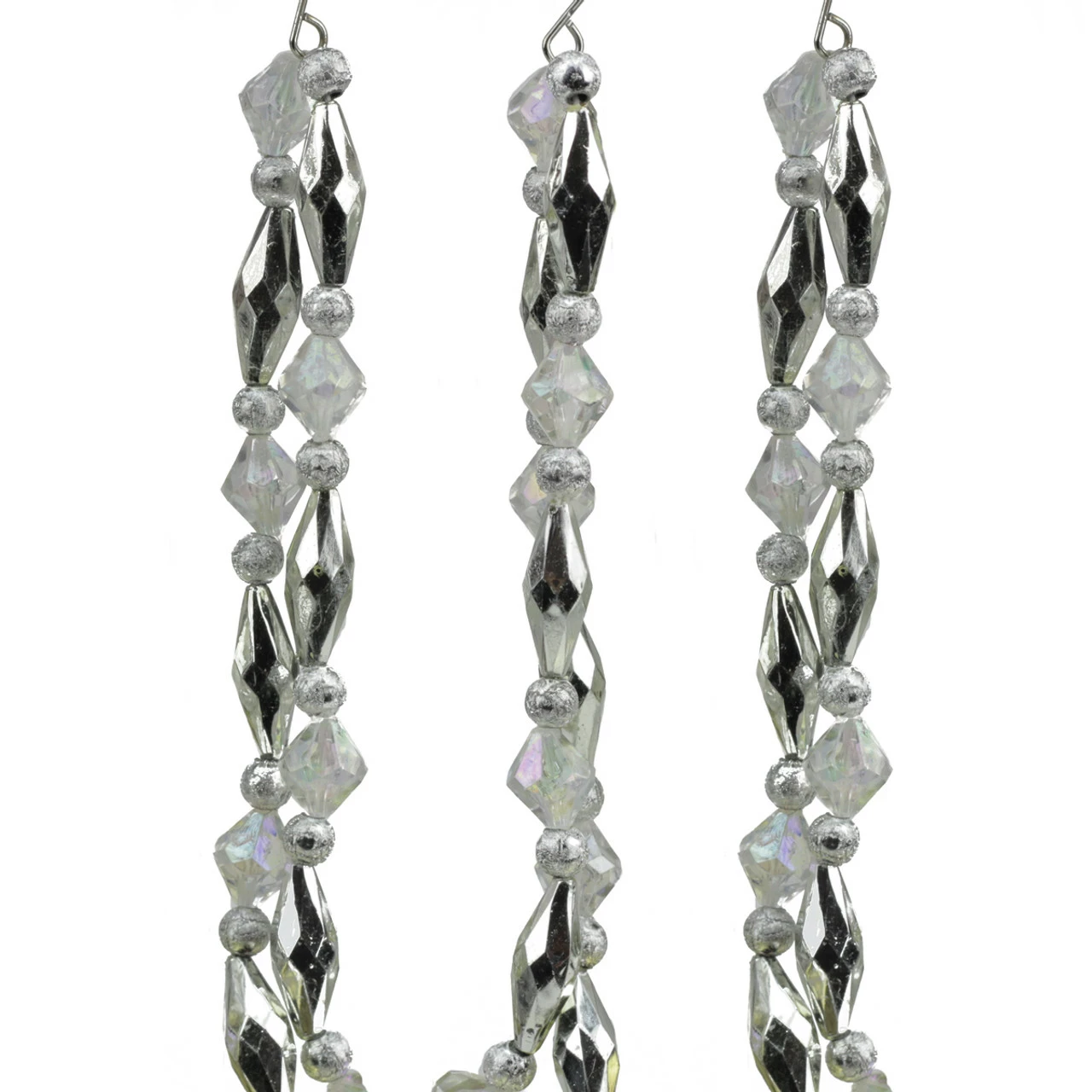 Swag garland with shiny silver beads and faceted clear beads